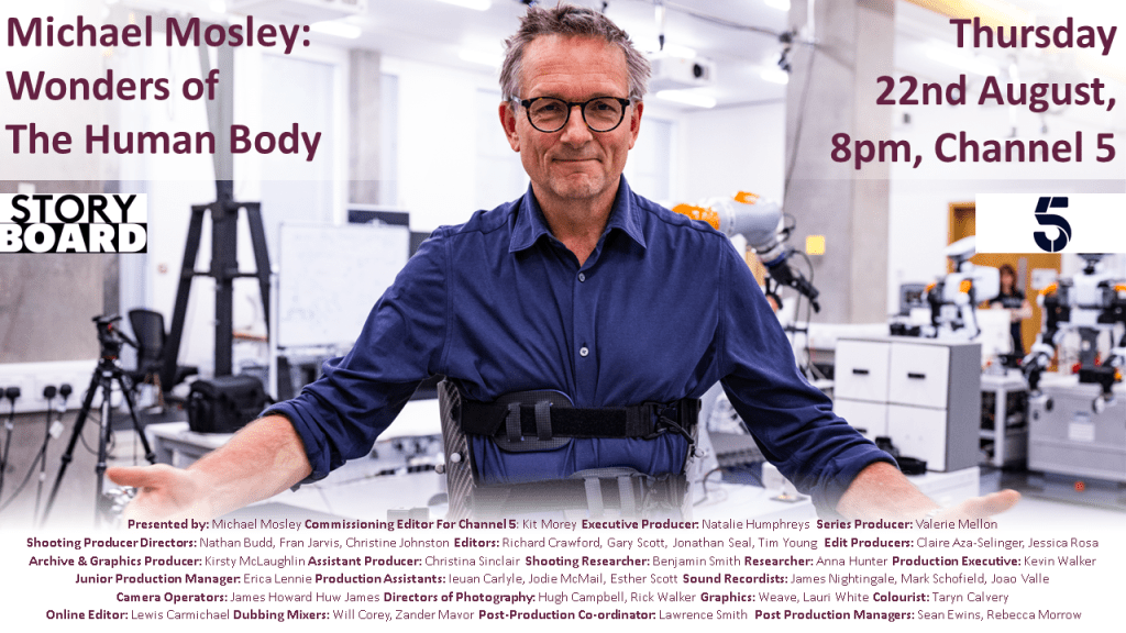 Last year I was fortunate enough to be Shooting AP for this fantastic science series featuring the late Michael Mosley. I worked across many shoots on this project as a Shooting PD on both 1st and 2nd camera using the Sony FX6. This involved a range of actuality shoots including surgery, sports and scientific research as well as interviews and studio shoots with contributors. A particular highlight was directing the pre-title sequence with Michael and 30 members of the public in busy Glasgow city centre and filming a unique form of open heart surgery.